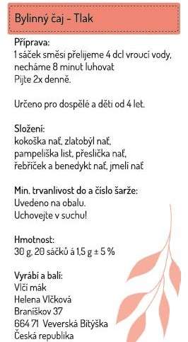 Složení: kokošková nať, zlatobýlová nať, pampeliškový list, přesličková nať,