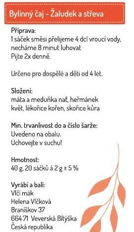 Složení: mátová a meduňková nať, heřmánkový květ, lékořicový kořen, skořicová kůra