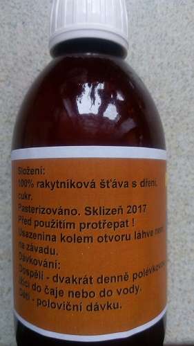 100% rakytníková šťáva s dření, cukr
