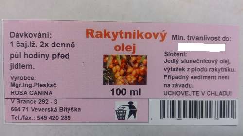 jedlý slunečnicový olej, výtažek z plodů rakytníku.