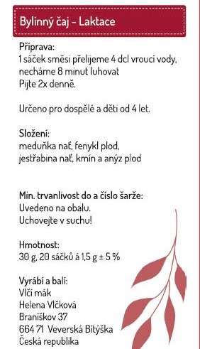 Složení: meduňková nať, fenyklový plod, jestřabinová nať, kmínový a anýzový plod