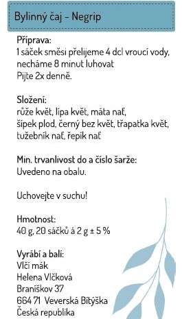 Složení: list černého rybízu, květ černého bezu, růžový a lipový květ, třapatkový květ a kořen, tužebníková nať