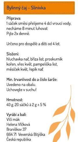 Složení: hluchavka nať, bříza list, proskurník kořen, vřes květ, pampeliška list, měsíček květ, řepík nať